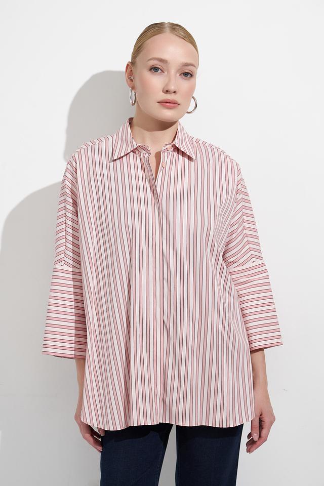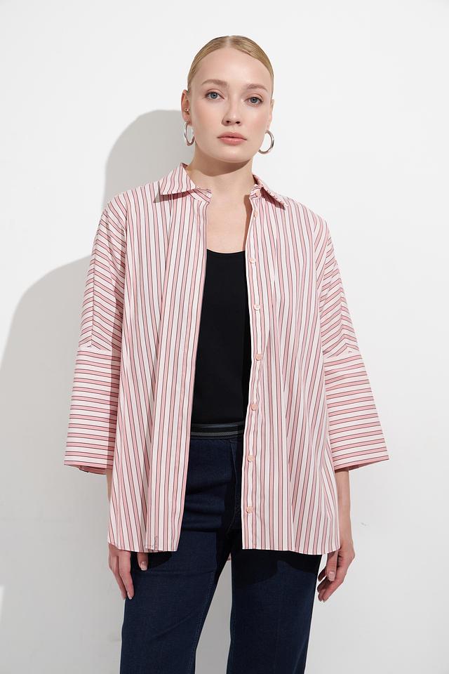 Модель имеет свободный крой, который обеспечивает комфорт в носке, а рукав 3/4 делает ее универсальной для любого времени года. Классический воротник придает блузе элегантный вид.