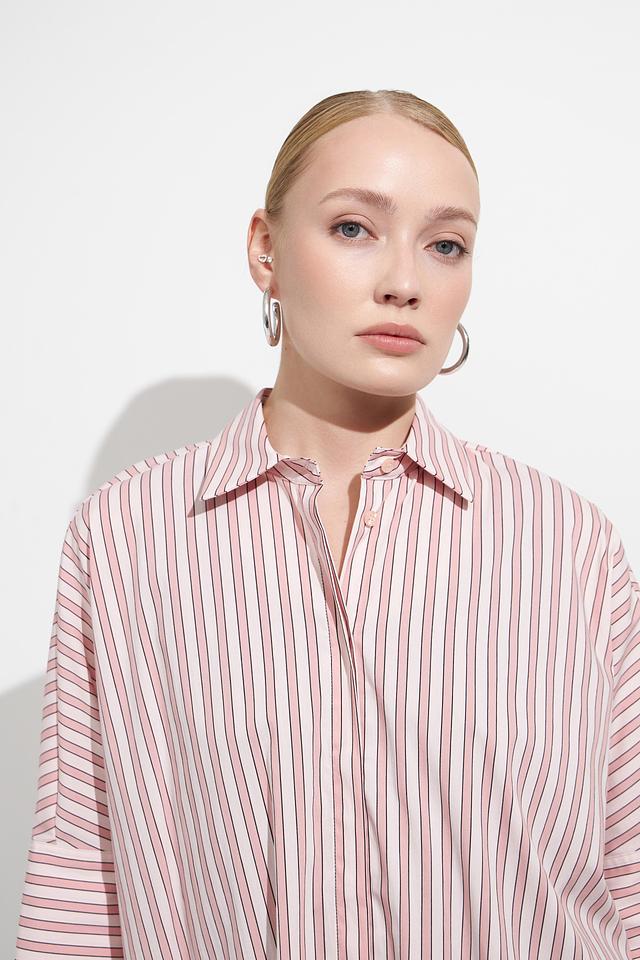 Эта блуза от Marc Aurel станет отличным дополнением к вашему гардеробу. Она выполнена в нежно-розовом цвете с вертикальной полоской, что визуально вытягивает силуэт.