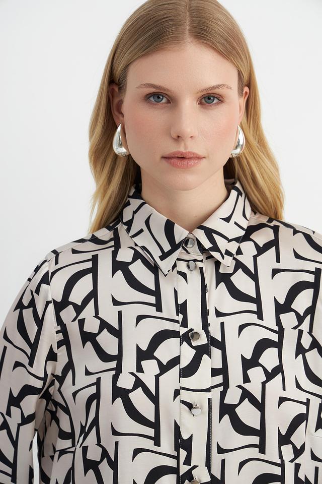Эта блуза от Marc Aurel – идеальный выбор для создания элегантного и современного образа. Выполнена в белом цвете с эффектным геометрическим принтом, который придает ей уникальность.