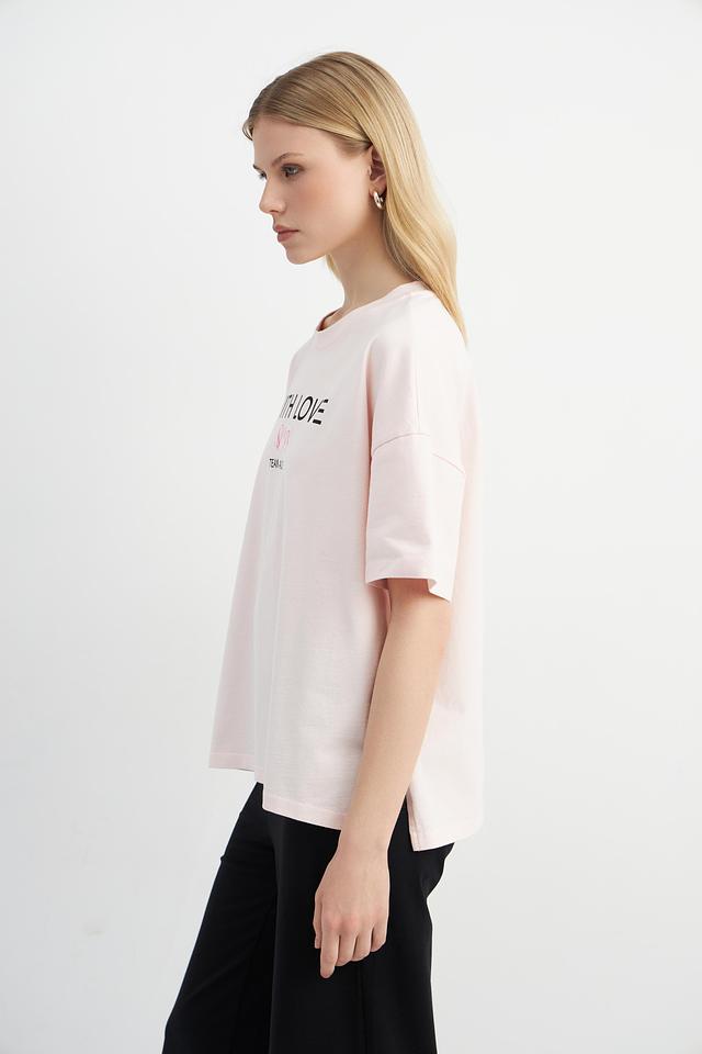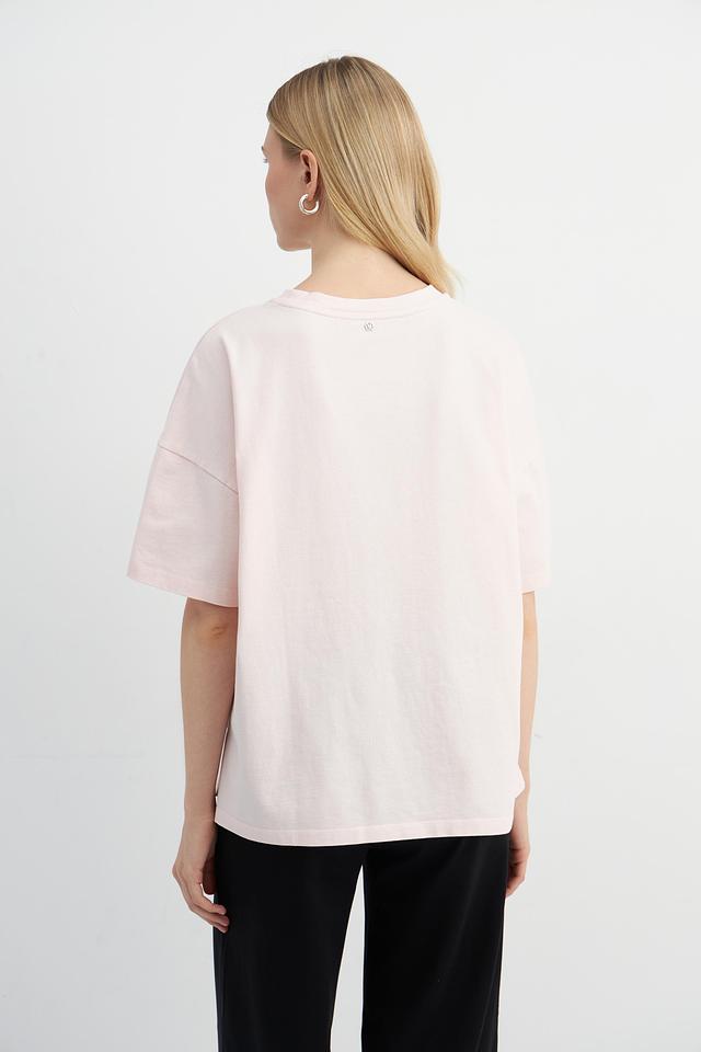 Футболка имеет свободный, оверсайз крой, который обеспечивает максимальный комфорт и свободу движений. Короткие рукава и классический круглый вырез делают ее универсальной для различных образов.