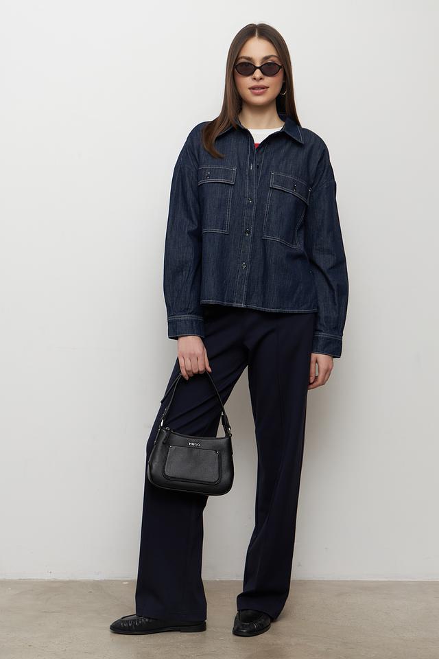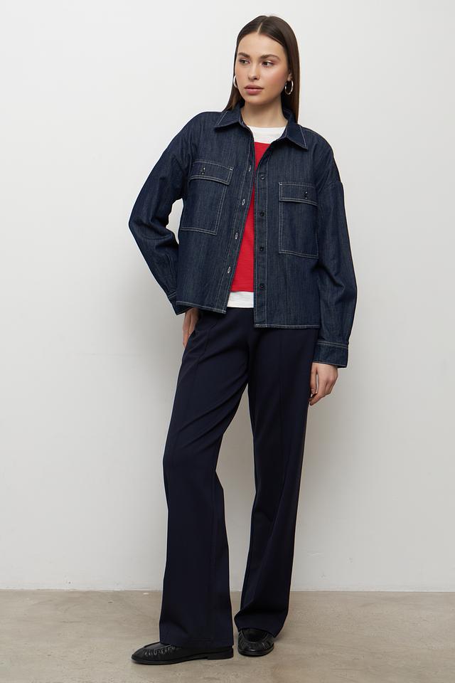 Дизайн жакета дополняют два накладных кармана на груди, которые не только функциональны, но и придают модели стильный, непринужденный вид. Воротник рубашечного типа добавляет жакету классический акцент.