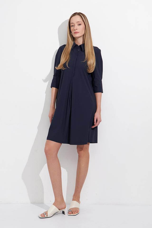 Платье Marc Aurel темно-синего цвета, выполнено из полиамида с добавлением эластана. Модель имеет рубашечный крой, короткий рукав и деликатную вышивку по краям. Состав: полиамид 78%, эластан 22%