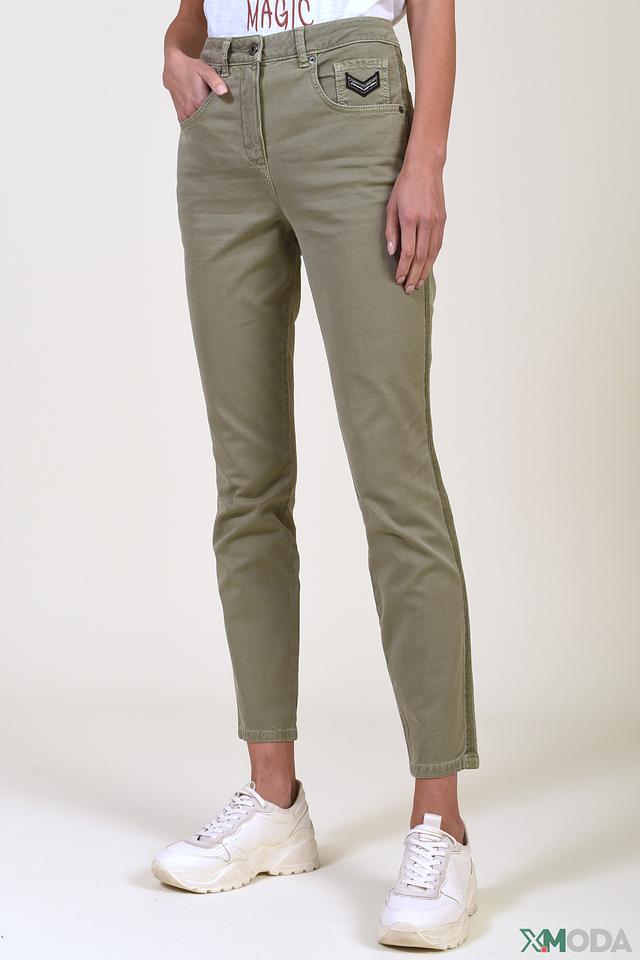 Женские брюки Marc Aurel цвета хаки — удобная и стильная модель с высокой посадкой и декоративной вышивкой на кармане. Изготовлены из хлопка с добавлением лиоцелла и эластана для комфорта и долговечности. Состав: хлопок 54%, лиоцел 43%, эластан 3%