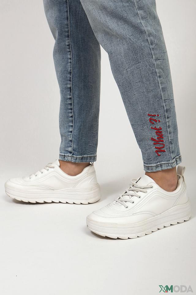 Особенности модели: эффект потертости, который придает джинсам винтажный вид, и стильная вышивка на штанине, добавляющая индивидуальности. Высокая посадка подчеркивает талию и создает силуэт.