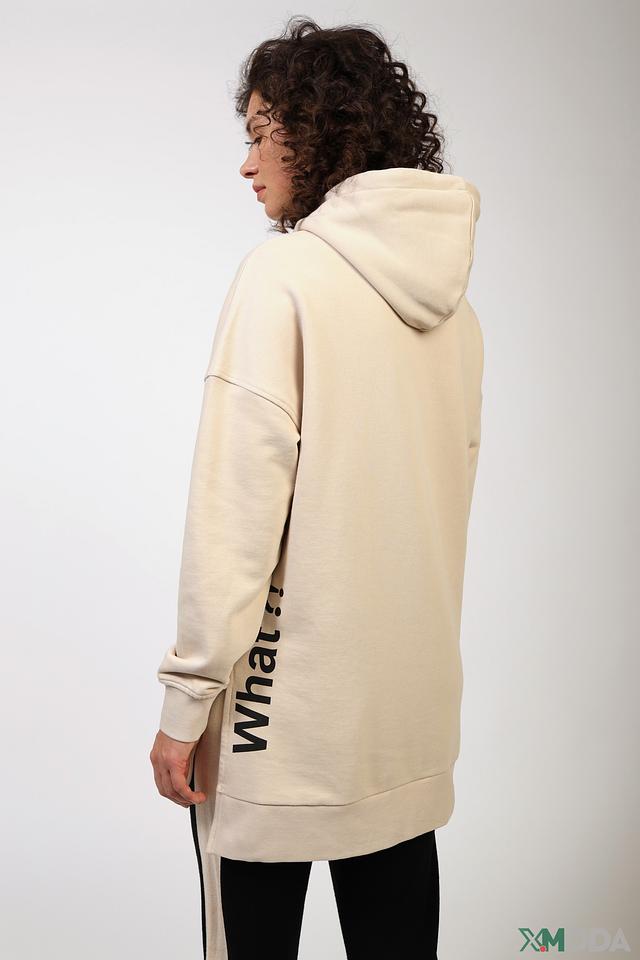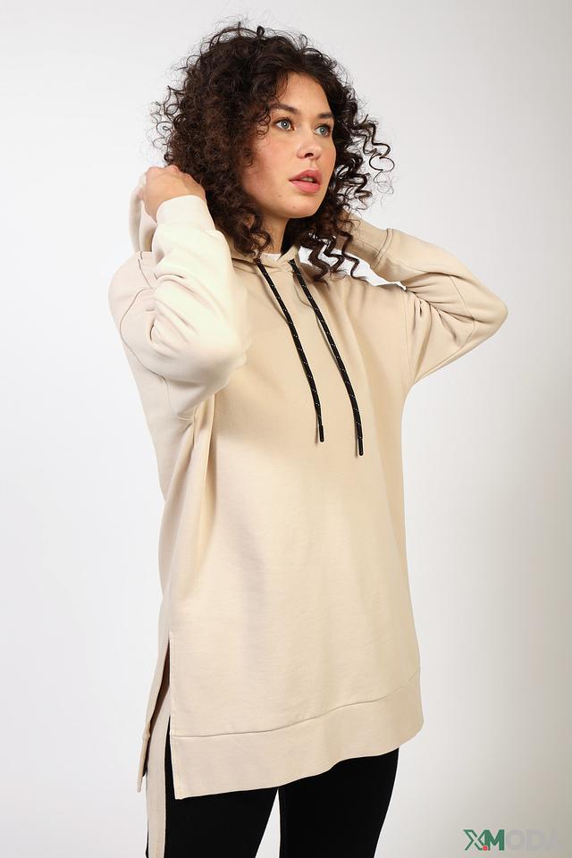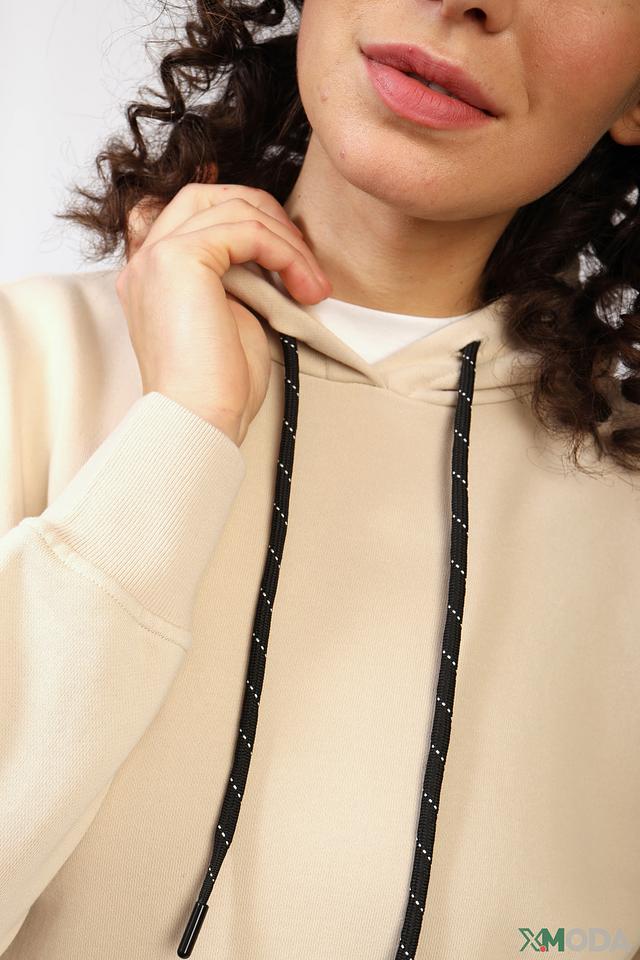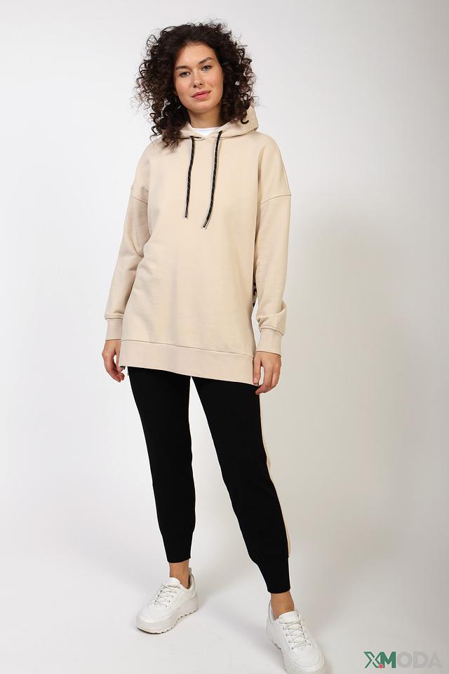 Бежевый пуловер Marc Aurel свободного кроя с капюшоном и надписью на рукаве. Модель выполнена из мягкого хлопка с добавлением полиэстера, обеспечивающего комфорт и износостойкость. Состав: хлопок 87%, полиэстер 13%