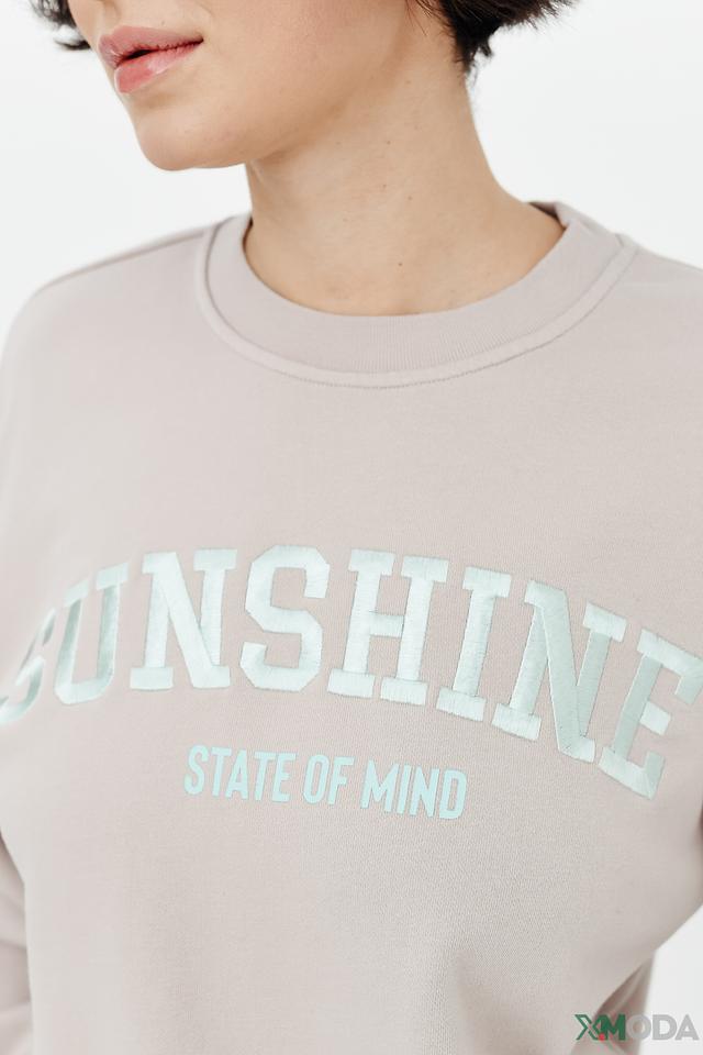 Стильная женская толстовка Marc Aurel светло-бежевого цвета с надписью "SUNSHINE STATE OF MIND". Изготовлена из мягкого хлопка с добавлением полиэстера для комфорта и долговечности. Идеальный выбор для создания уютного и модного образа. Состав: хлопок 87%, полиэстер 13%