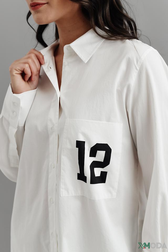 Рубашка имеет прямой, слегка свободный крой, который обеспечивает комфорт в носке. Длинные рукава и классический отложной воротник придают ей элегантный вид. На нагрудном кармане расположен оригинальный принт с цифрой "12", который добавляет рубашке индивидуальности.