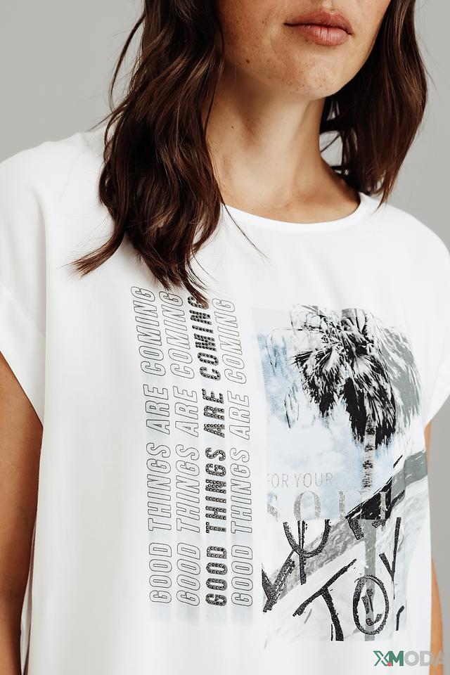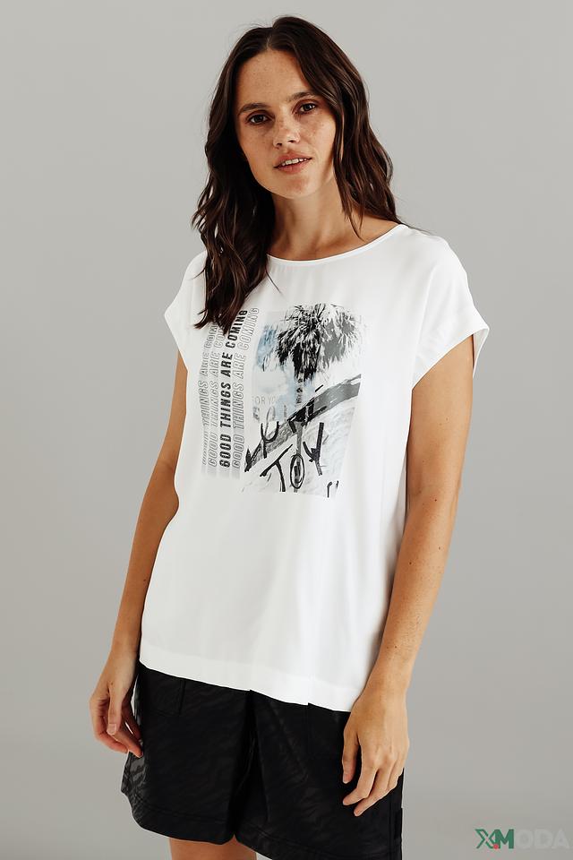 Белая футболка Marc Aurel с оригинальным графическим принтом. Модель свободного кроя из 100% вискозы обеспечит комфорт и лёгкость в носке. Идеальный выбор для создания стильного повседневного образа. Состав: вискоза 100%