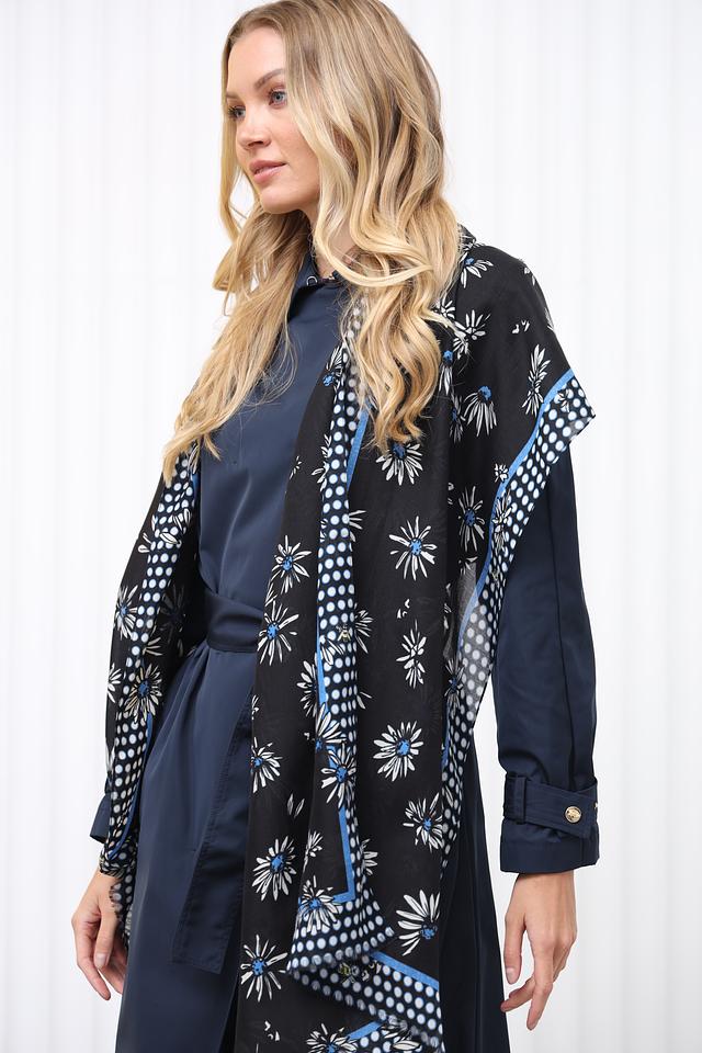 Этот изысканный платок от Marc Cain – идеальный аксессуар для создания неповторимого стиля. Платок выполнен в чёрном цвете и украшен оригинальным цветочным принтом, выполненным в белых и голубых тонах.