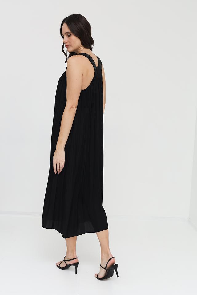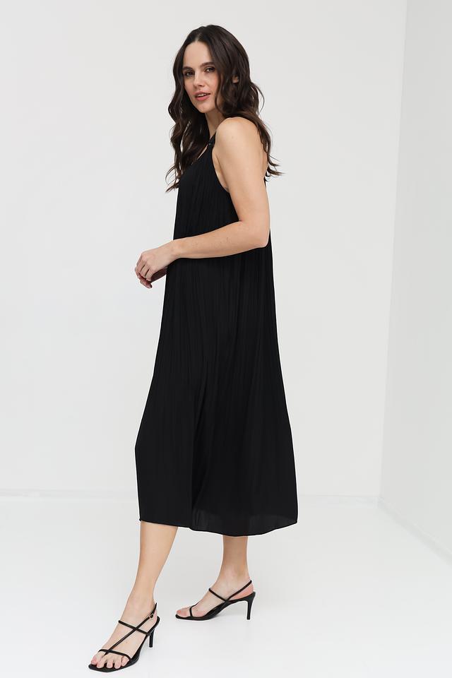 Платье имеет тонкие бретели и V-образный вырез, что придает ему женственность и изящество. Длина миди делает его универсальным для различных случаев – от повседневной прогулки до вечернего мероприятия. Текстурированная ткань придает платью особый шарм.