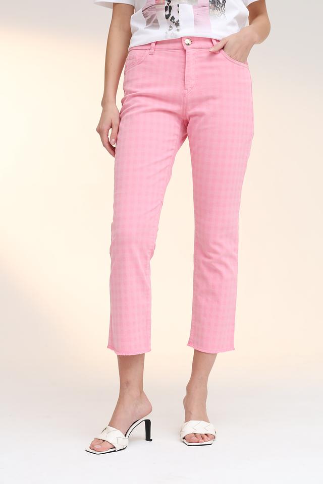 Розовые джинсы Marc Cain в клетку – стильная и комфортная модель с зауженным к низу кроем. Изготовлены из органического хлопка с добавлением эластана для оптимальной посадки и свободы движений. Состав: хлопок органич. 97%, эластан 3%