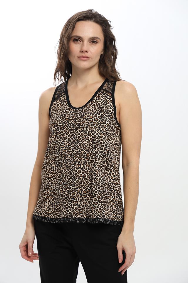 Топ Marc Cain в леопардовый принт – это стильное и удобное решение для повседневного гардероба. Модель с тонкими бретелями и кружевной отделкой добавит образу женственности и легкости. Состав: хлопок 94%, эластан 6%