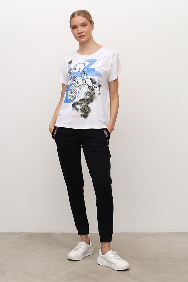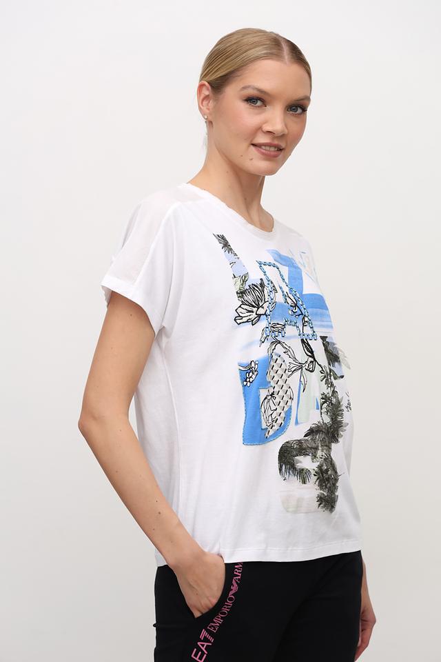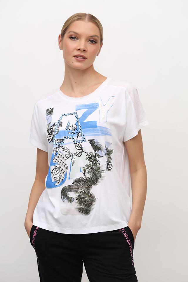 Белая футболка Marc Cain с ярким цветочным принтом – стильное и комфортное решение для повседневного образа. Изготовлена из 100% хлопка, обеспечивающего приятные ощущения на коже. Состав: хлопок 100%