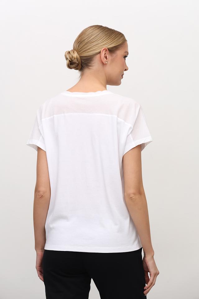 Эта белая футболка от Marc Cain станет отличным дополнением к вашему гардеробу. Она выполнена из высококачественного 100% хлопка, что гарантирует комфорт и воздухопроницаемость в течение всего дня.