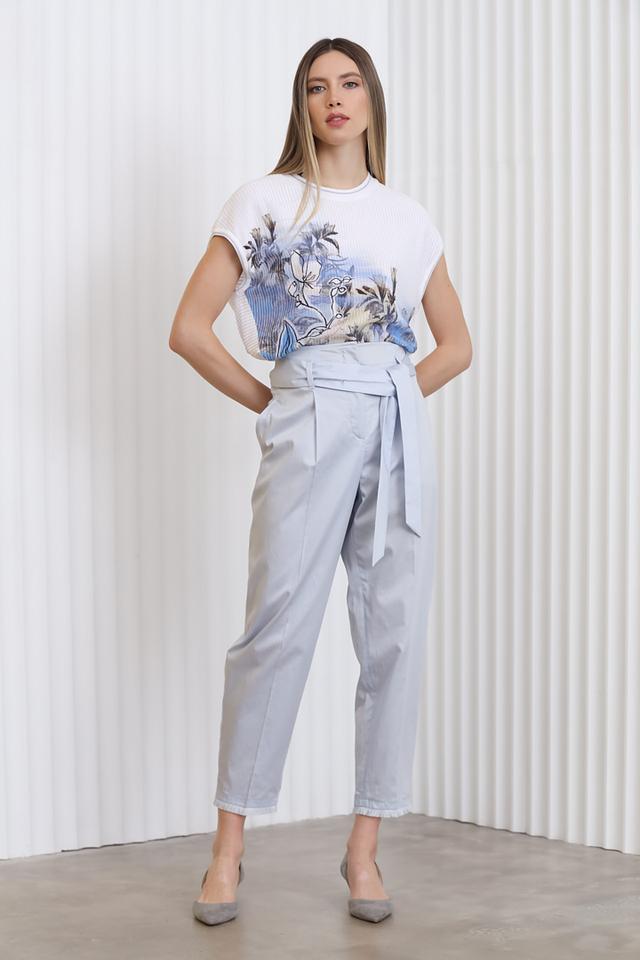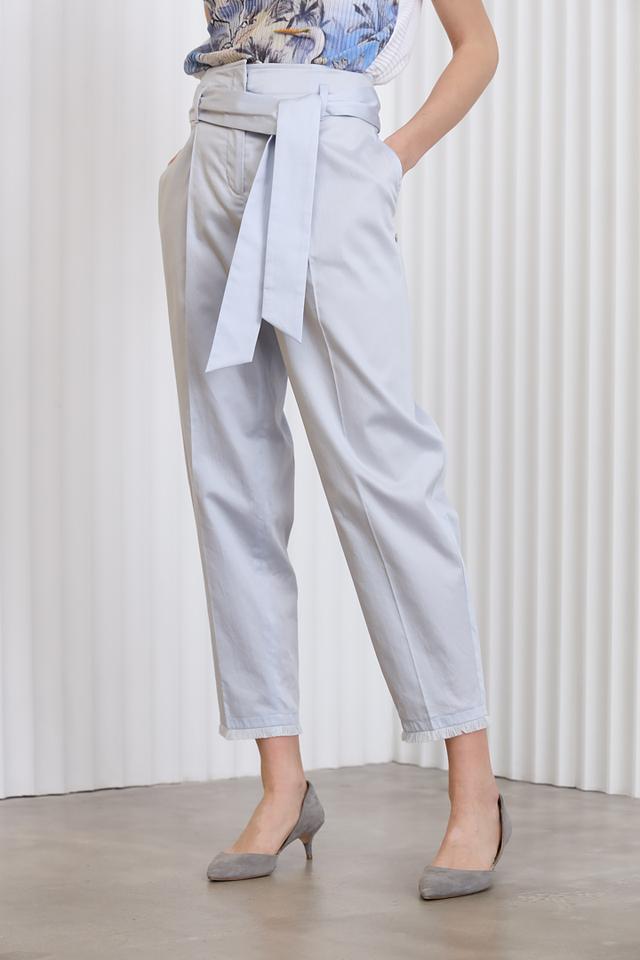 Светло-серые брюки от Marc Cain с поясом-завязкой — стильное и комфортное решение для создания элегантного образа. Модель выполнена из 100% хлопка, что обеспечивает приятные ощущения при носке и удобство в уходе. Состав: хлопок 100%