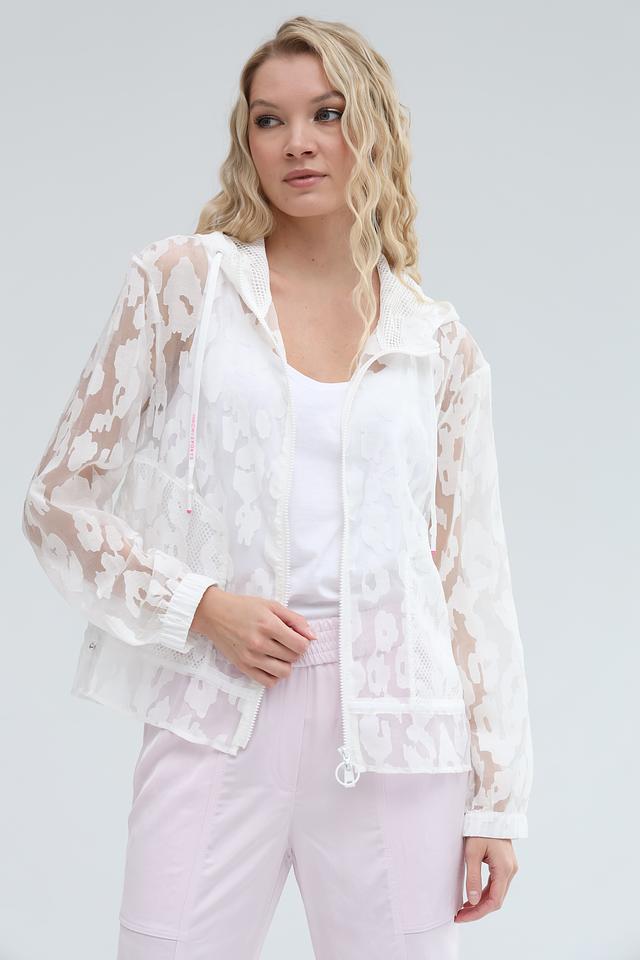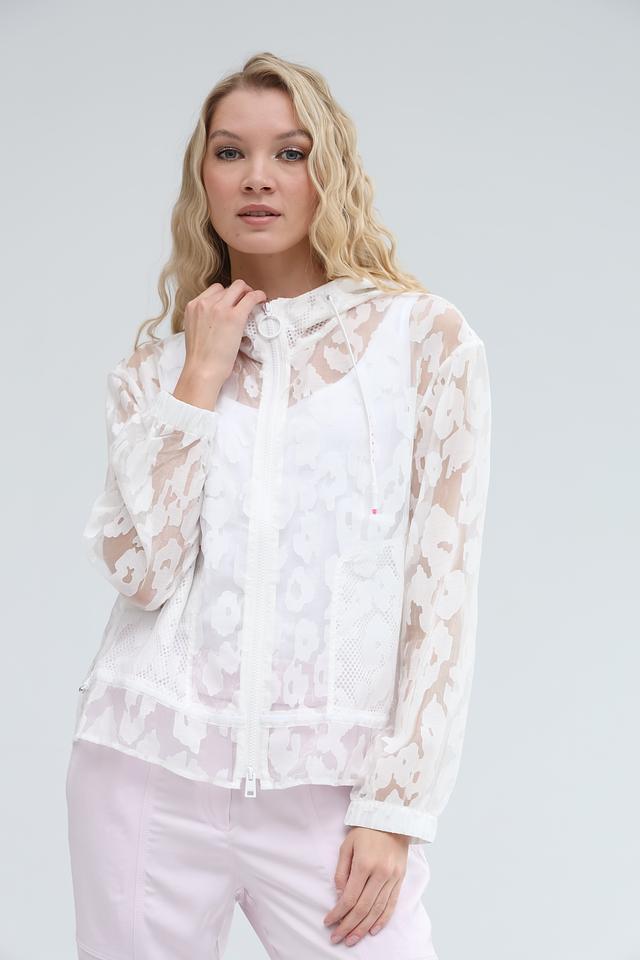 Белая блуза Marc Cain с оригинальным цветочным принтом – стильное и лёгкое решение для создания воздушного образа. Модель с капюшоном и застёжкой-молнией выполнена из полупрозрачной ткани, что придает ей особую изящность. Состав: вискоза 60%, полиамид 40%