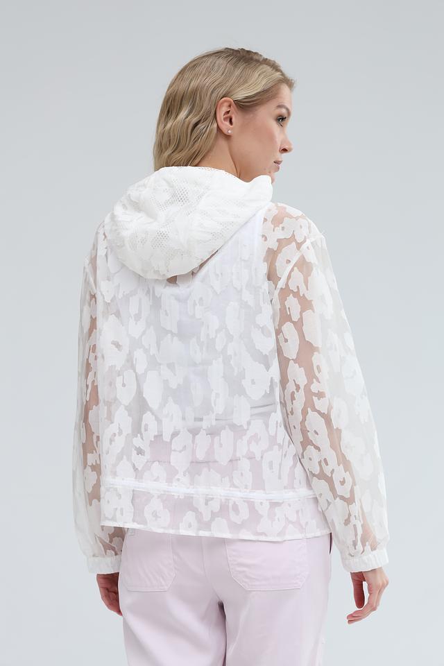 Модель имеет капюшон и застёжку-молнию, что делает её практичной и удобной в носке. Полупрозрачная ткань добавляет легкости и воздушности образу. Блуза идеально подойдет для создания как повседневных, так и более нарядных образов.