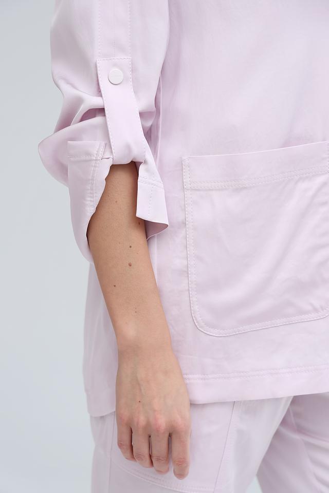 Модель отличается прямым кроем, лацканами и застёжкой на две пуговицы. Накладные карманы добавляют практичности и непринуждённости. Длинные рукава завершаются аккуратными манжетами.