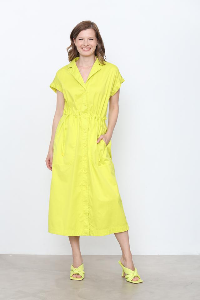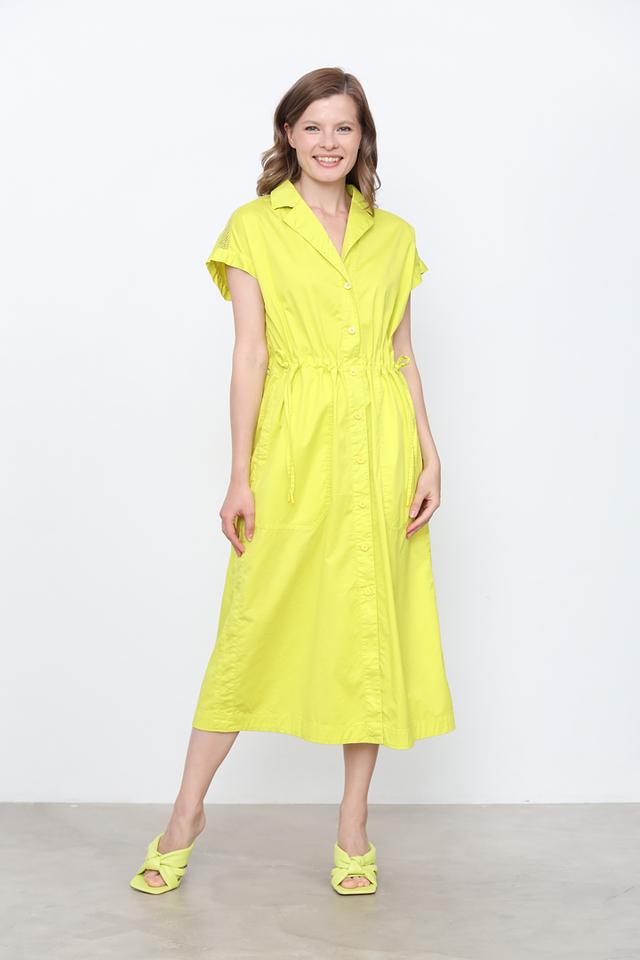 Платье имеет короткие рукава и боковые карманы. Яркий цвет лайм делает это платье отличным выбором для создания стильного и запоминающегося образа. Состав: 96% хлопок, 4% эластан.
