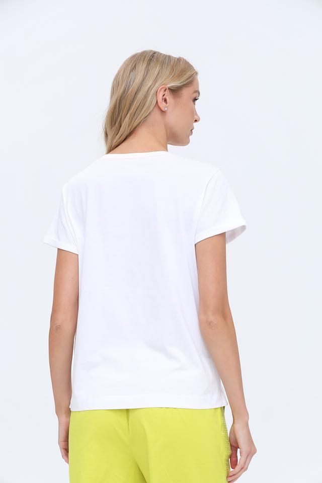 Белая футболка Marc Cain из 100% хлопка, украшенная ярким принтом в виде коктейля. Стильная и комфортная модель станет отличным дополнением к вашему образу. Состав: хлопок 100%