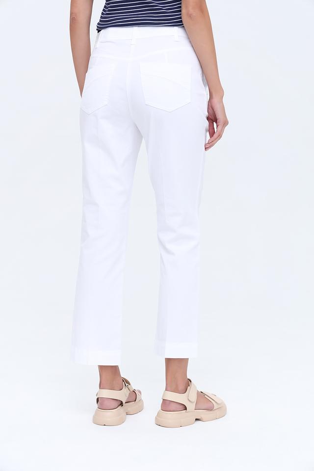 Брюки имеют укороченный крой, который подчеркивает изящество ног. Модель выполнена из высококачественного органического хлопка с добавлением эластана, что обеспечивает комфорт при носке и сохранение формы.
