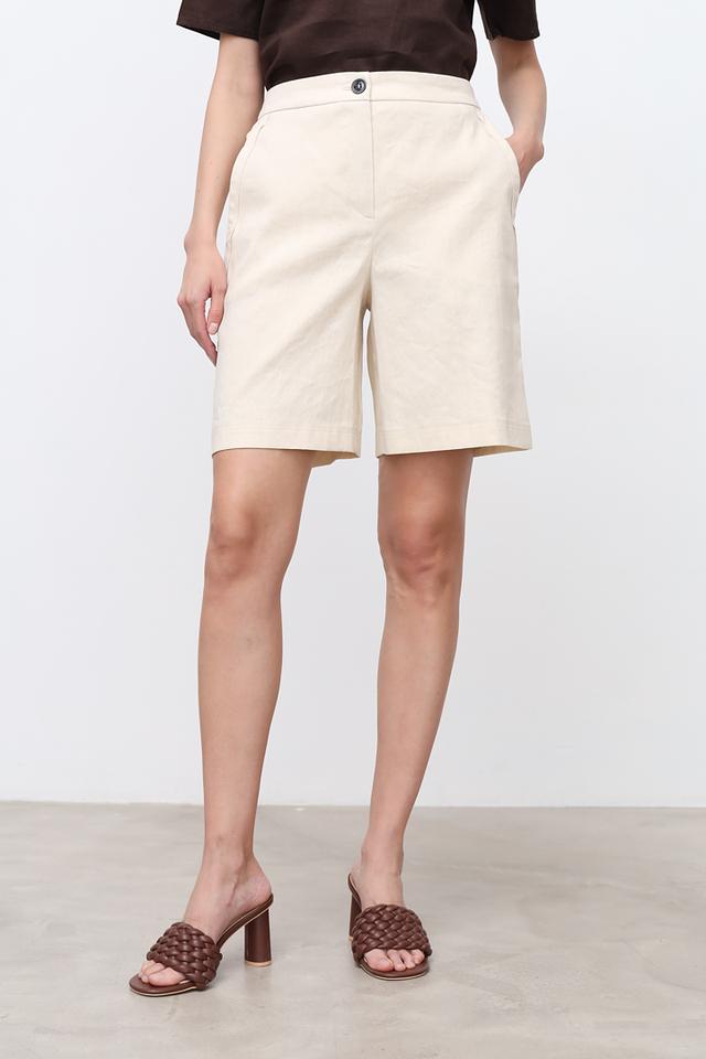 Шорты имеют прямой крой и классическую посадку по фигуре. Изготовлены из высококачественного льна с добавлением хлопка и эластана, что обеспечивает комфорт и удобство в носке. Ткань приятна на ощупь и хорошо пропускает воздух.