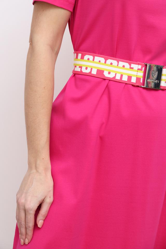 Этот ремень от Marc Cain – идеальный способ подчеркнуть талию и добавить яркий акцент в ваш гардероб. Ремень выполнен в насыщенном фуксиевом цвете, который эффектно контрастирует с белыми и желтыми полосками, создавая динамичный и запоминающийся образ.