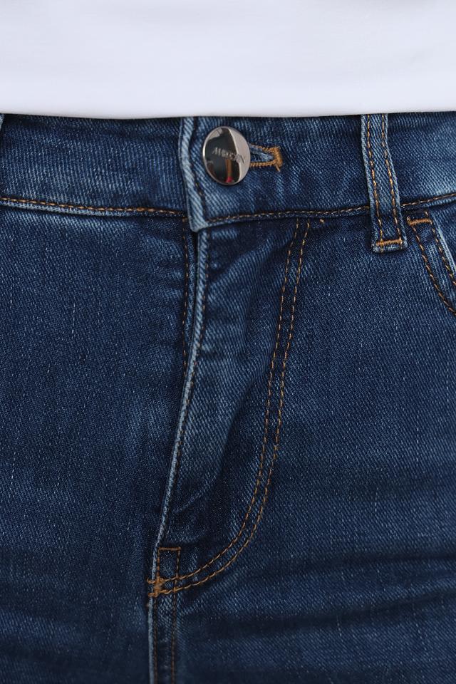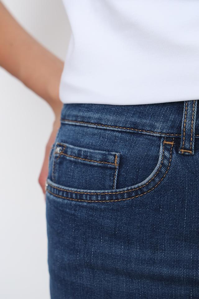 Синие джинсы Marc Cain с укороченным кроем и оригинальным подворотом. Модель выполнена из качественного хлопка с добавлением эластана для комфортной посадки и свободы движений. Состав: хлопок 92%, эластомультиэстер 6%, эластан 2%