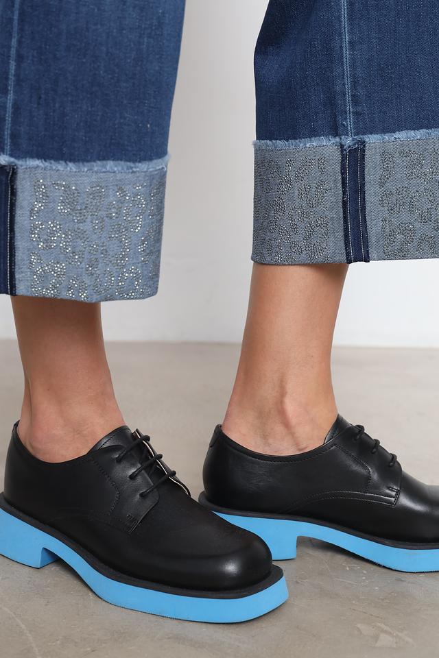 Джинсы имеют стандартную посадку по талии и зауженный крой книзу, что обеспечивает комфортную посадку и подчеркивает фигуру. Оригинальный подворот добавляет образу непринужденности и стиля.