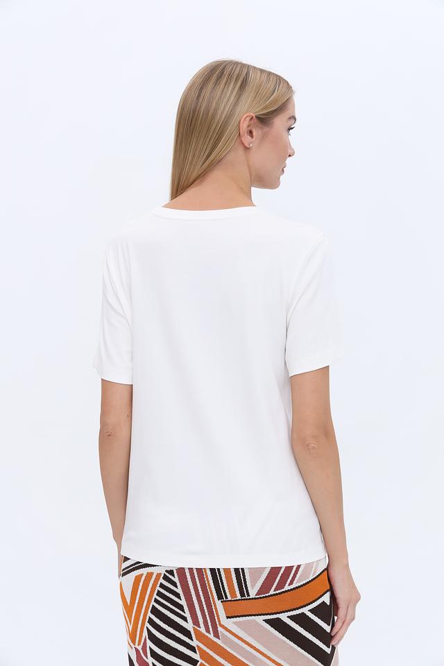 Эта белая футболка от Marc Cain – идеальный выбор для тех, кто ценит комфорт и оригинальный дизайн. Футболка выполнена из 100% хлопка, что обеспечивает приятные ощущения на коже и отличную воздухопроницаемость.