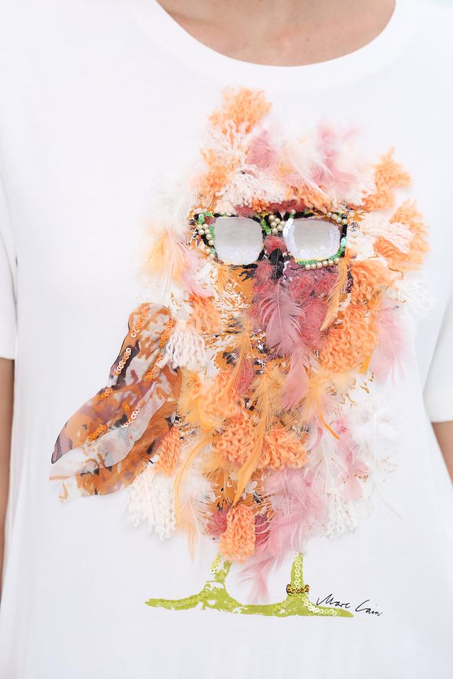 Белая футболка Marc Cain с оригинальным принтом совы станет ярким акцентом вашего образа. Изготовлена из 100% хлопка, обеспечивая комфорт и воздухопроницаемость. Стильный крой и качественный материал делают эту футболку незаменимой в гардеробе. Состав: хлопок 100%