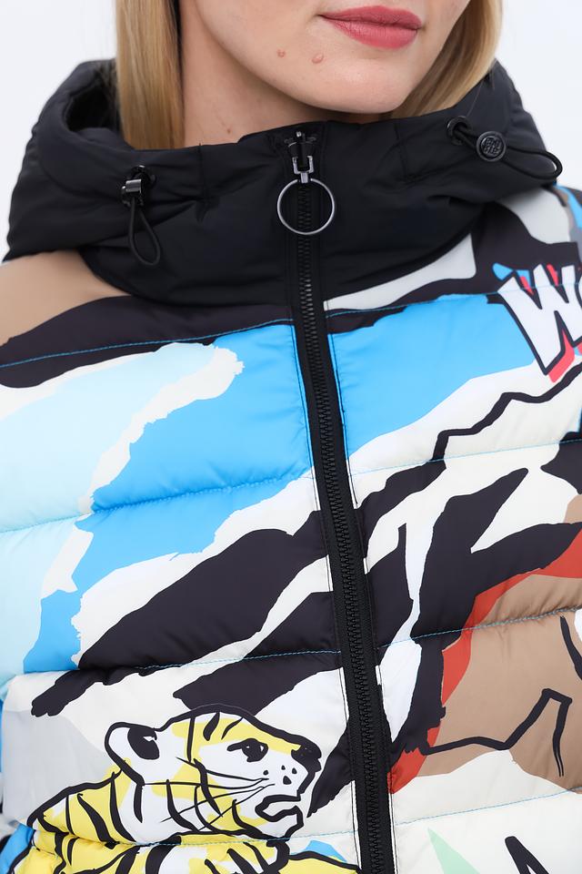 Эта яркая куртка от Marc Cain Sports – отличный выбор для тех, кто ценит комфорт и индивидуальность. Изготовленная из 100% полиэстера, она обеспечивает легкость и тепло. Куртка имеет стеганую фактуру и эффектный разноцветный принт с изображением тигра, пальм и комиксных элементов.