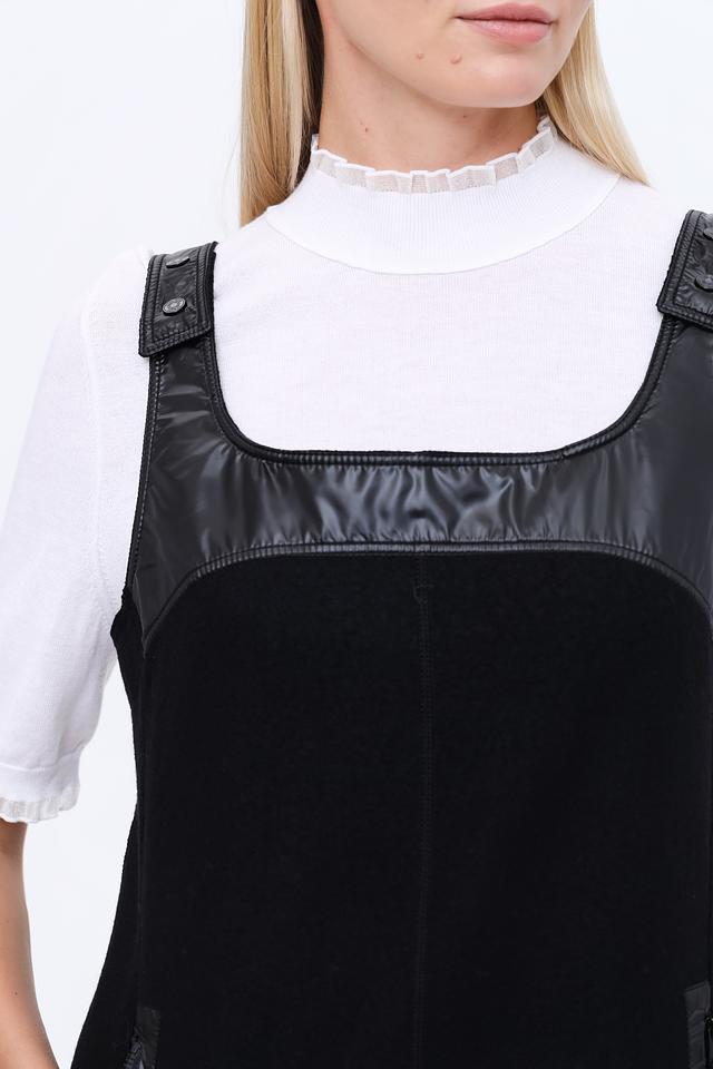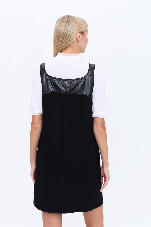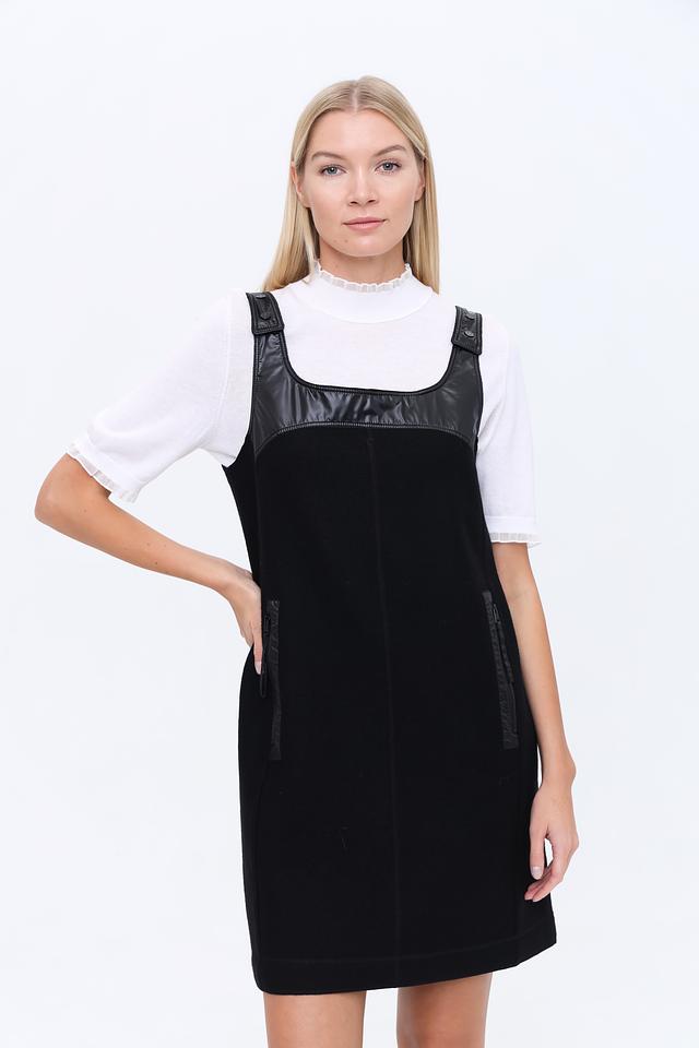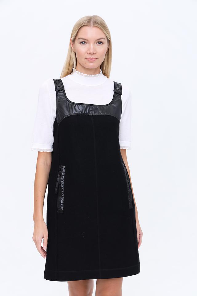 Чёрный платье-сарафан от Marc Cain – стильная и лаконичная модель с кожаными вставками. Изготовлено из 100% шерсти, что обеспечивает комфорт и тепло в прохладную погоду. Состав: шерсть 100%