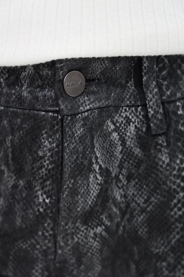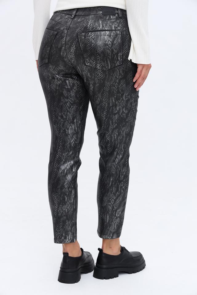 Представляем вашему вниманию элегантные джинсы от бренда Marc Cain. Эта модель выполнена в чёрном цвете и отличается уникальным принтом, имитирующим кожу рептилии, что придает образу изысканность и современный вид.