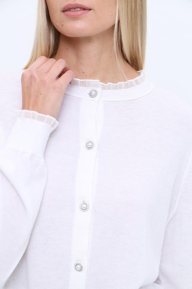 Белый жакет Marc Cain – это элегантная и стильная модель с застёжкой на пуговицы и отделкой рюшами. Жакет выполнен из высококачественной шерсти с добавлением полиамида и полиэстера, что обеспечивает комфорт и долговечность. Состав: шерсть 85%, полиамид 8%, полиэстер 7%