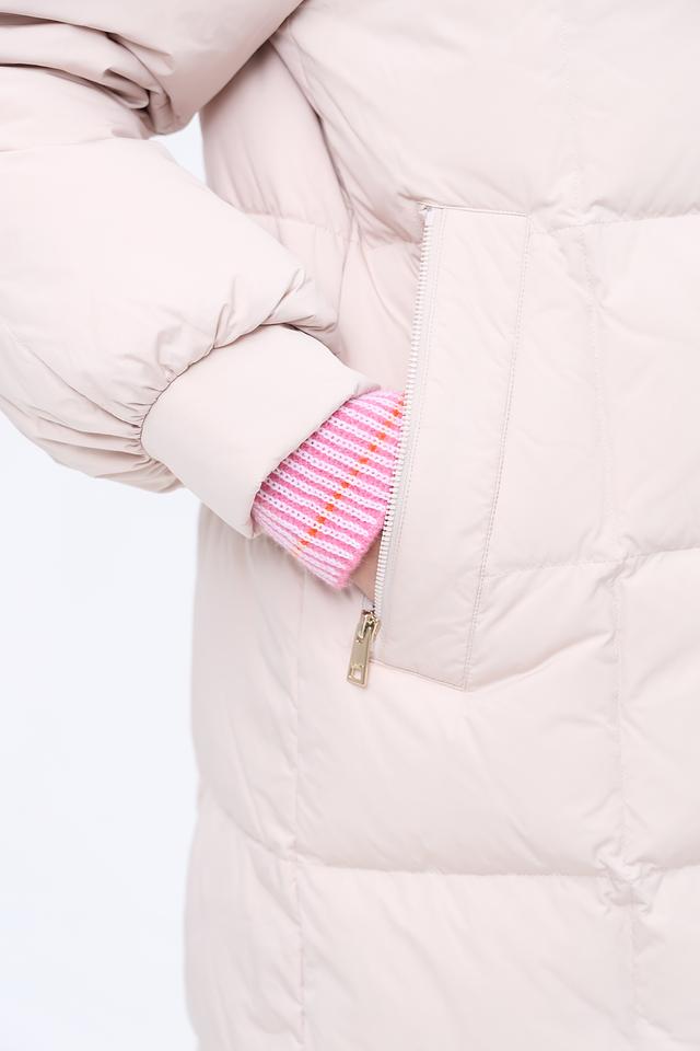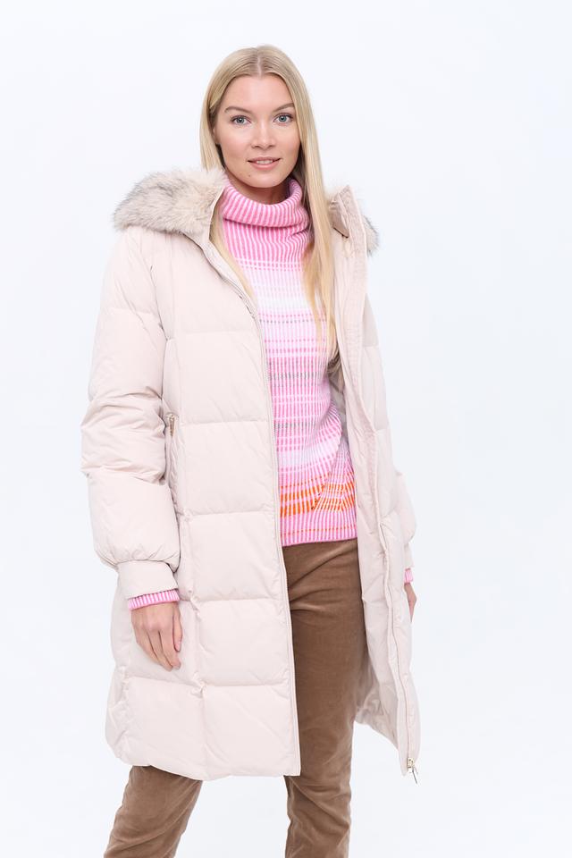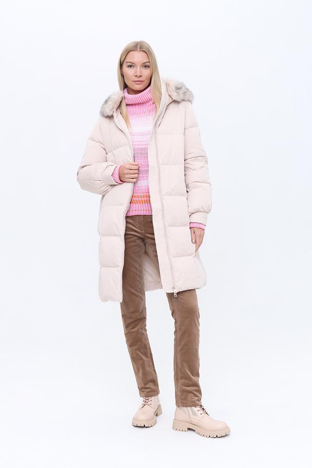 Стеганое пальто от Marc Cain – это идеальный выбор для создания стильного и практичного образа. Пальто выполнено в нежном бежевом цвете, который легко сочетается с различными элементами гардероба.