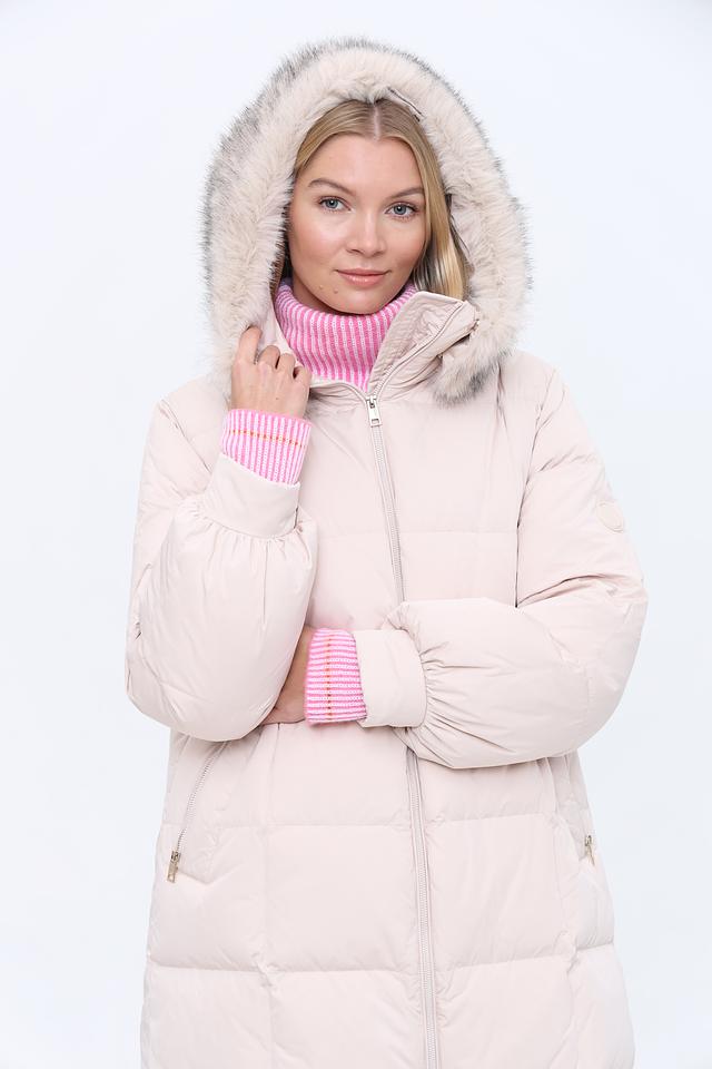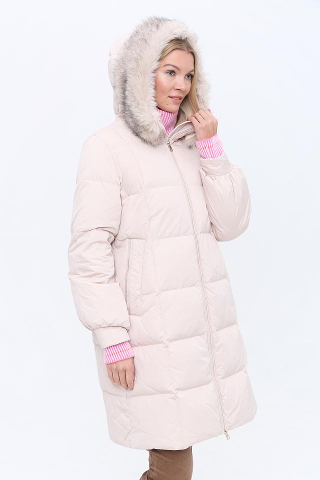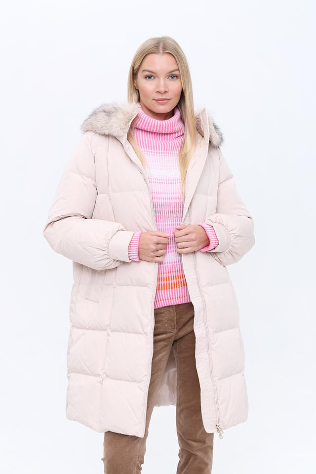 Бежевое стеганое пальто Marc Cain – это стильное и теплое решение для прохладной погоды. Модель с капюшоном и меховой отделкой добавит образу элегантности и комфорта. Состав: полиэстер 87%, полиамид 13%