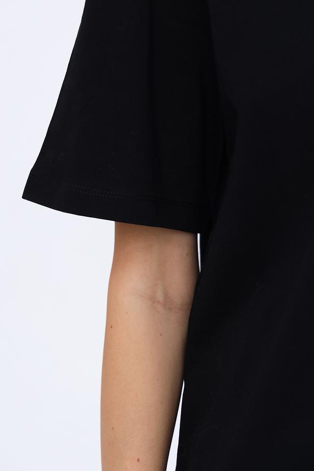 Футболка имеет прямой, слегка свободный крой, который позволяет создать расслабленный и непринужденный образ. Короткие рукава делают её идеальным выбором для теплой погоды.