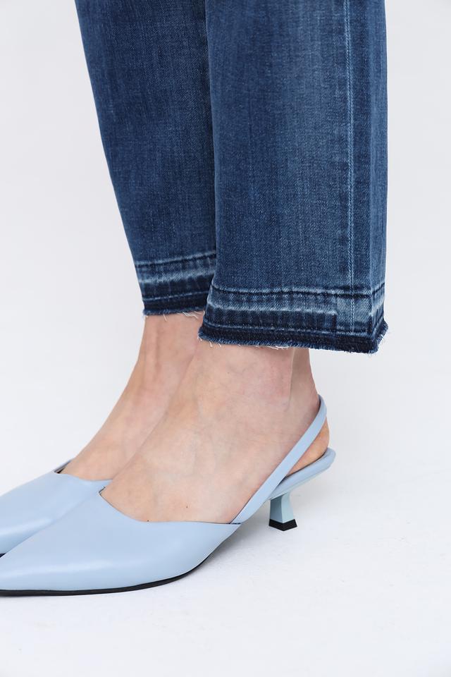 Джинсы имеют слегка завышенную талию и прямую посадку по бедрам, что обеспечивает удобную и женственную посадку. Укороченный крой идеально подходит для создания модных образов с туфлями, балетками или кедами.