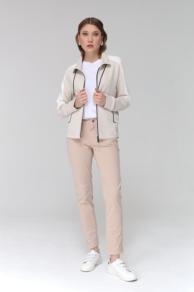 Бежевый жакет от Marc Cain – стильная модель на молнии с контрастной отделкой. Жакет выполнен из хлопка с добавлением полиэстера и эластана, что обеспечивает комфорт и удобство в носке. Оригинальный дизайн с декоративной вышивкой на спине. Состав: хлопок 88%, полиэстер 8%, эластан 4%