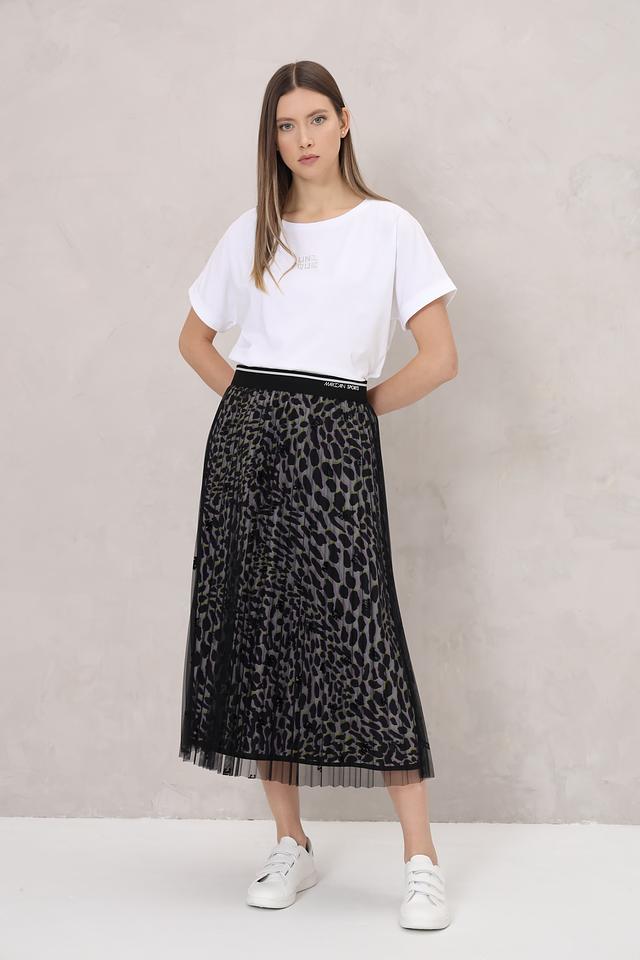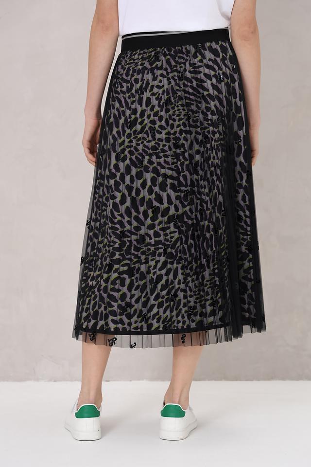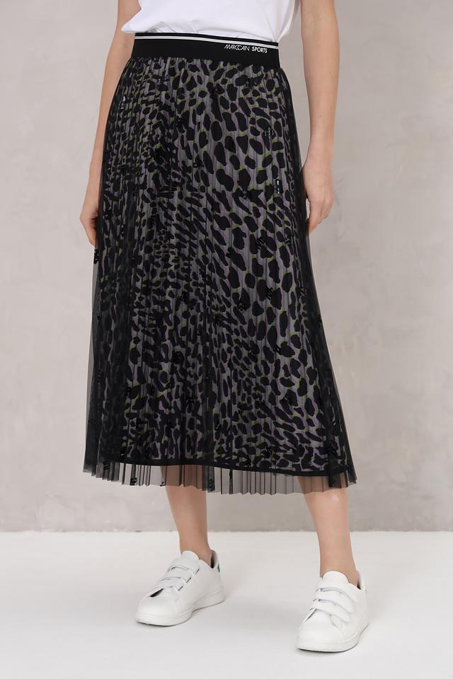 Юбка Marc Cain Sports чёрного цвета с эффектным леопардовым принтом и эластичным поясом. Модель выполнена из плиссированной сетки и идеально подходит для создания стильных и комфортных образов. Состав: полиэстер 100%