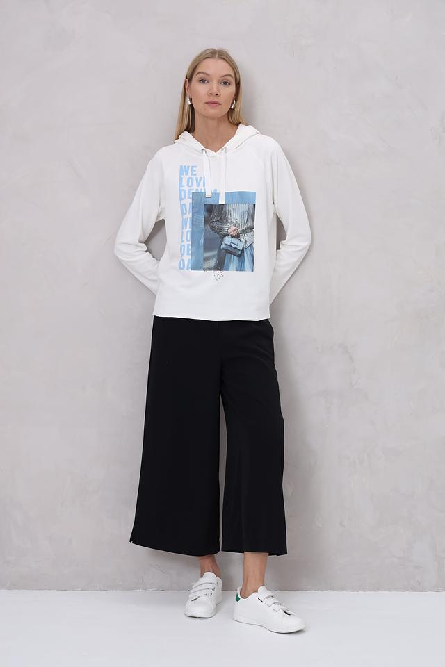 Представляем элегантные брюки-кюлоты от известного бренда Marc Cain. Эта модель выполнена в классическом чёрном цвете, который легко сочетается с различными элементами гардероба.