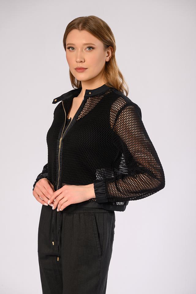 Чёрный жакет Marc Cain из сетчатой ткани с застёжкой на молнию. Модель выполнена из 100% хлопка и имеет классический крой. Жакет станет стильным дополнением к вашему гардеробу. Состав: хлопок 100%