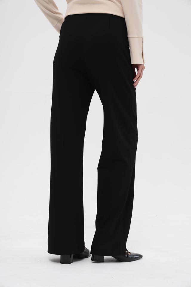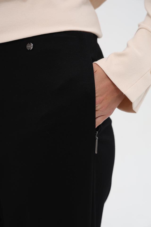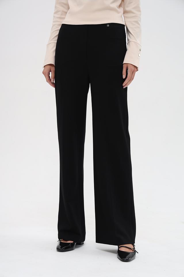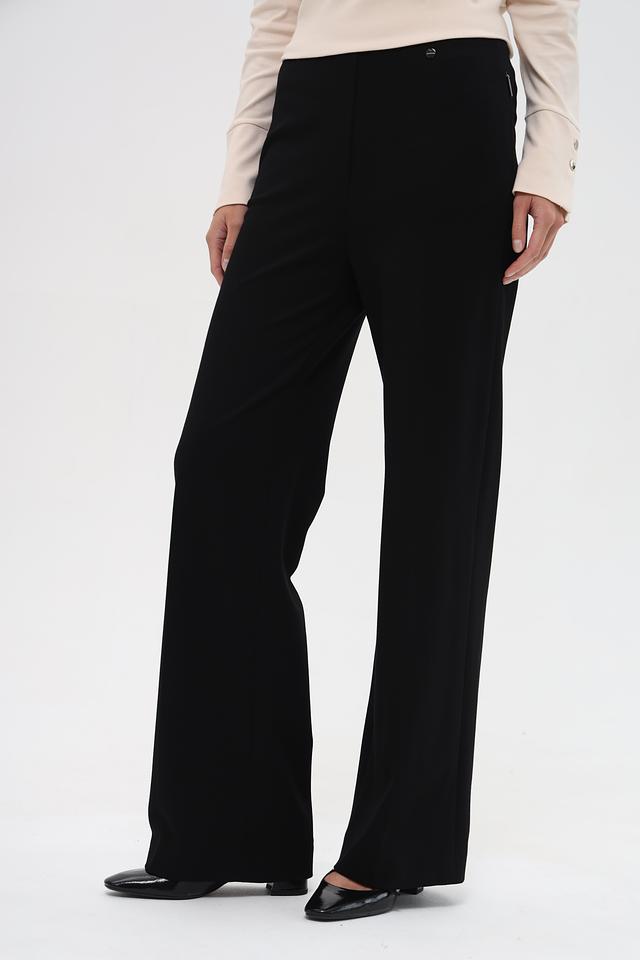 Представляем элегантные брюки от известного бренда Marc Cain. Эта модель выполнена в классическом чёрном цвете и имеет прямой, слегка расклешенный к низу крой – палаццо, который визуально удлиняет ноги и придает образу изысканность.