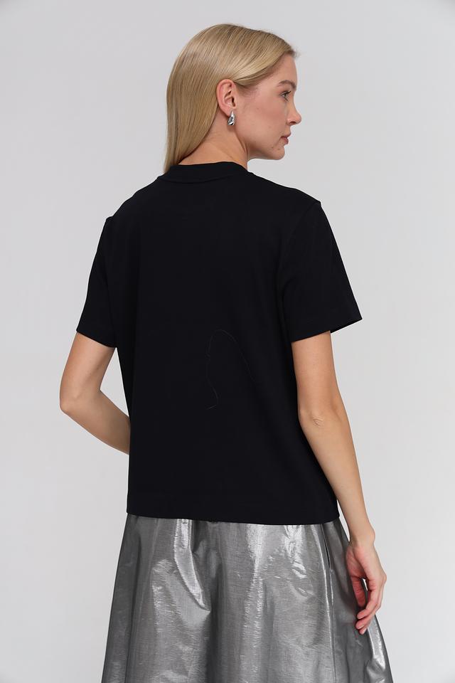 Чёрная футболка Marc Cain с оригинальным декором из кристаллов. Изготовлена из 100% хлопка, обеспечивающего комфорт и воздухопроницаемость. Стильный и элегантный выбор для повседневного гардероба. Состав: хлопок 100%