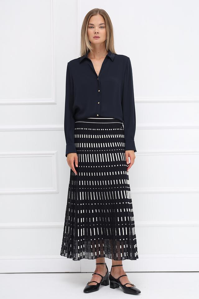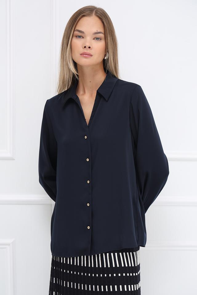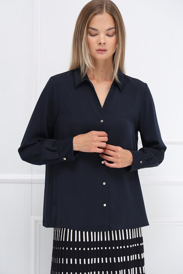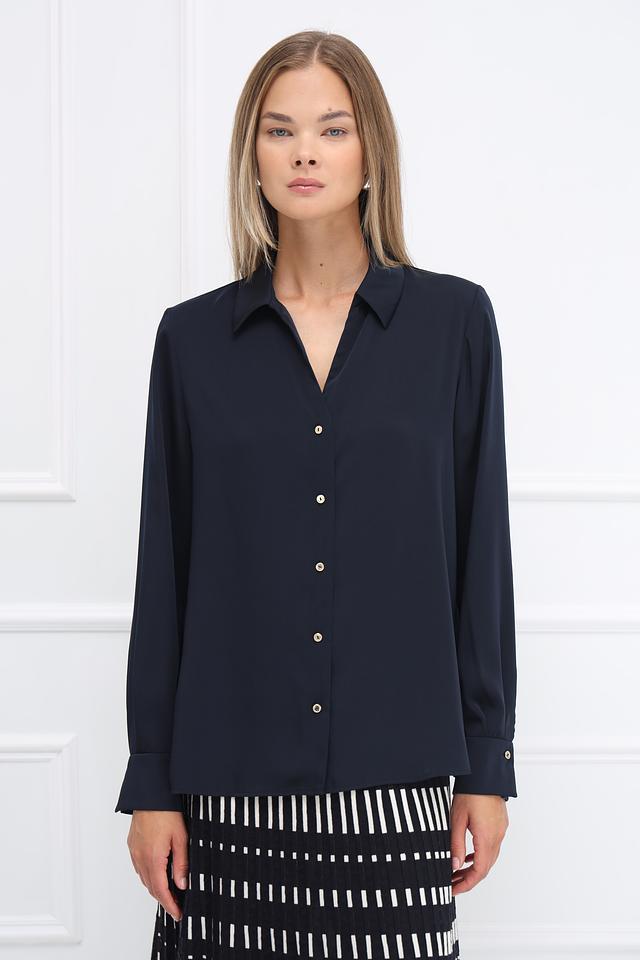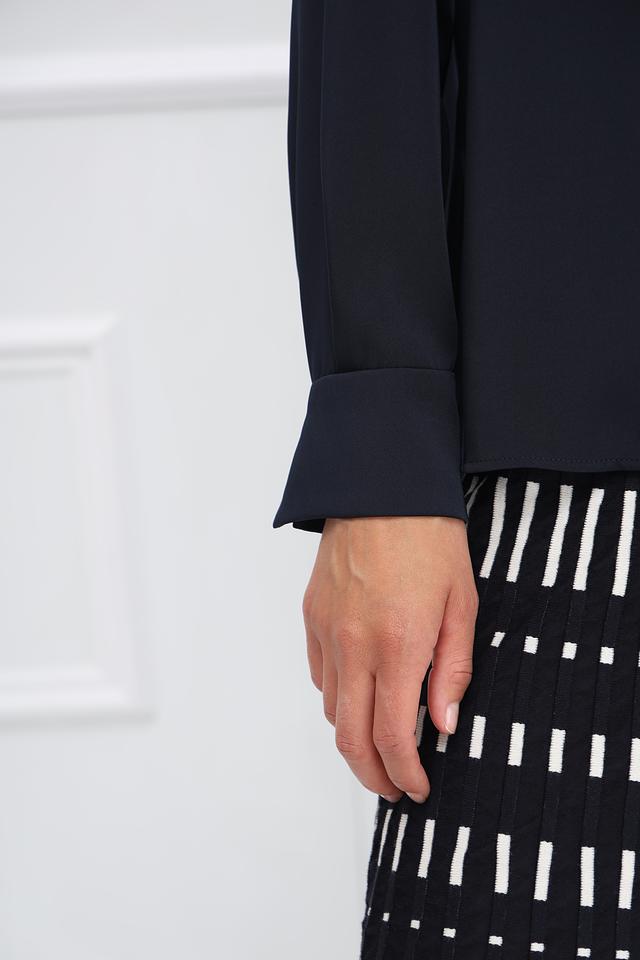 Классический крой рубашки с длинными рукавами делает ее подходящей для создания как деловых, так и повседневных образов. V-образный вырез подчеркивает элегантность силуэта.
