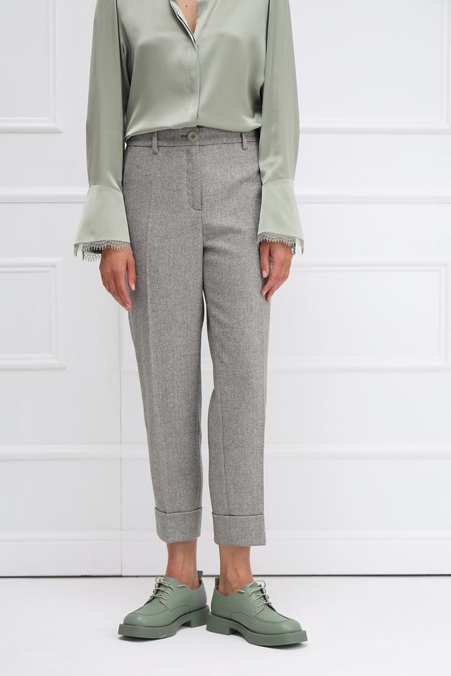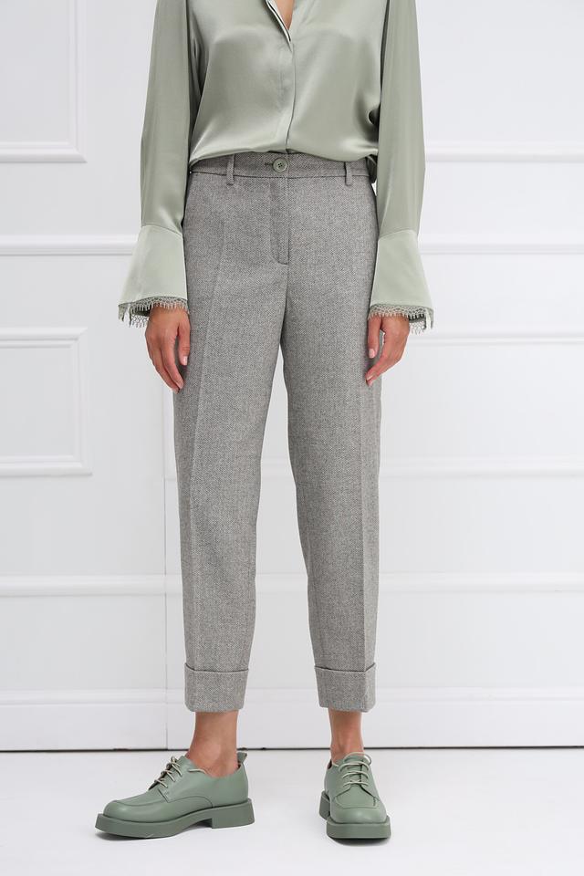Эти брюки от Marc Cain станут незаменимой частью вашего гардероба. Классический серый цвет и фактурная ткань в мелкую клетку делают их универсальными и подходящими для различных образов.