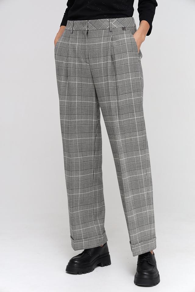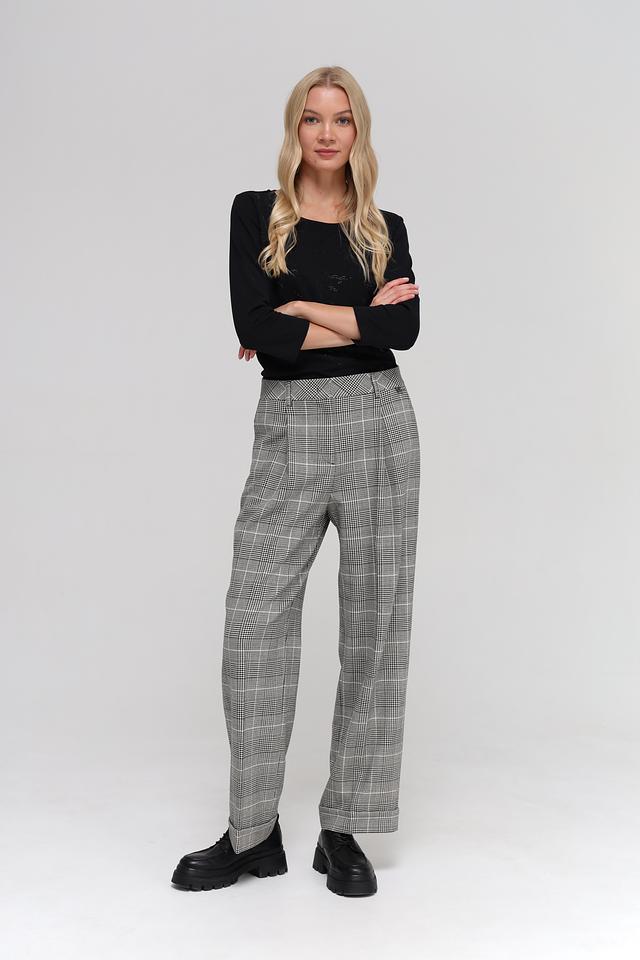 Женские брюки Marc Cain серого цвета в классическую клетку – элегантный выбор для создания стильного образа. Модель прямого кроя с застроченной талией и боковыми карманами. Состав: полиэстер 62%, вискоза 26%, шерсть 9%, эластан 3%