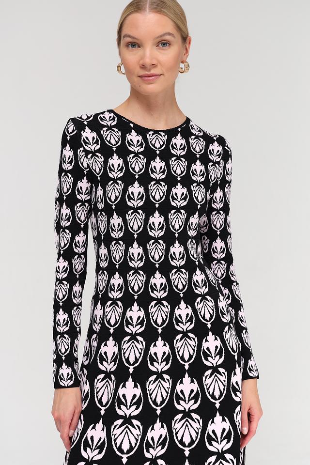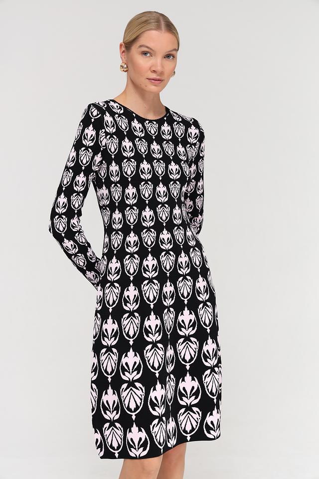 Платье имеет приталенный силуэт, который подчеркивает фигуру, и длину до колена. Длинные рукава делают его подходящим для прохладной погоды или для создания более сдержанного образа.