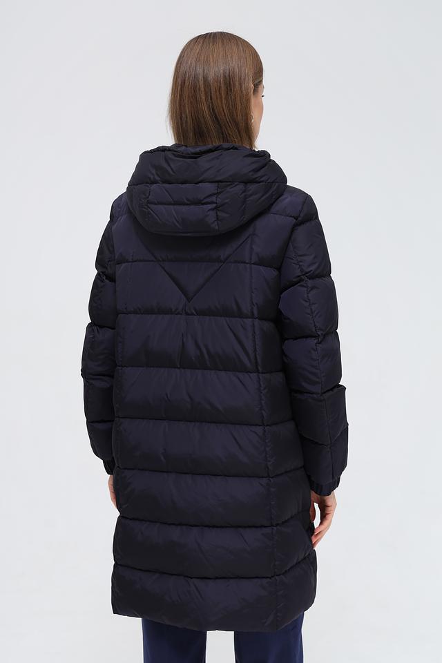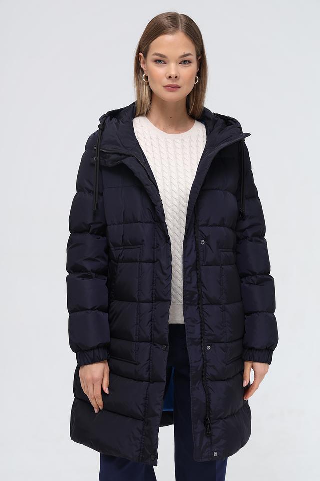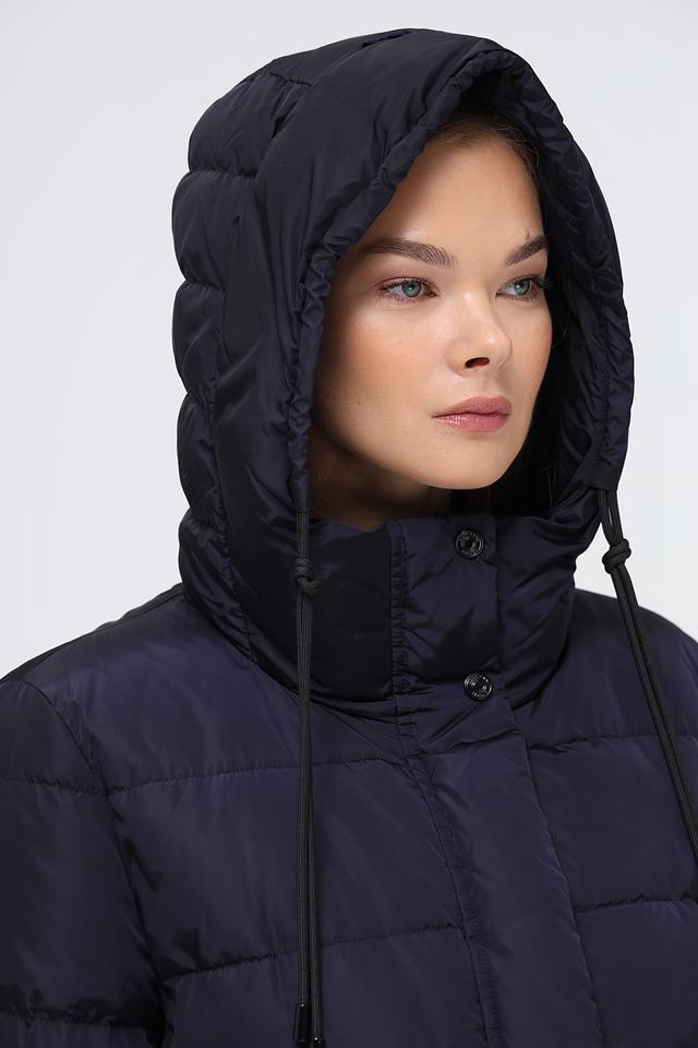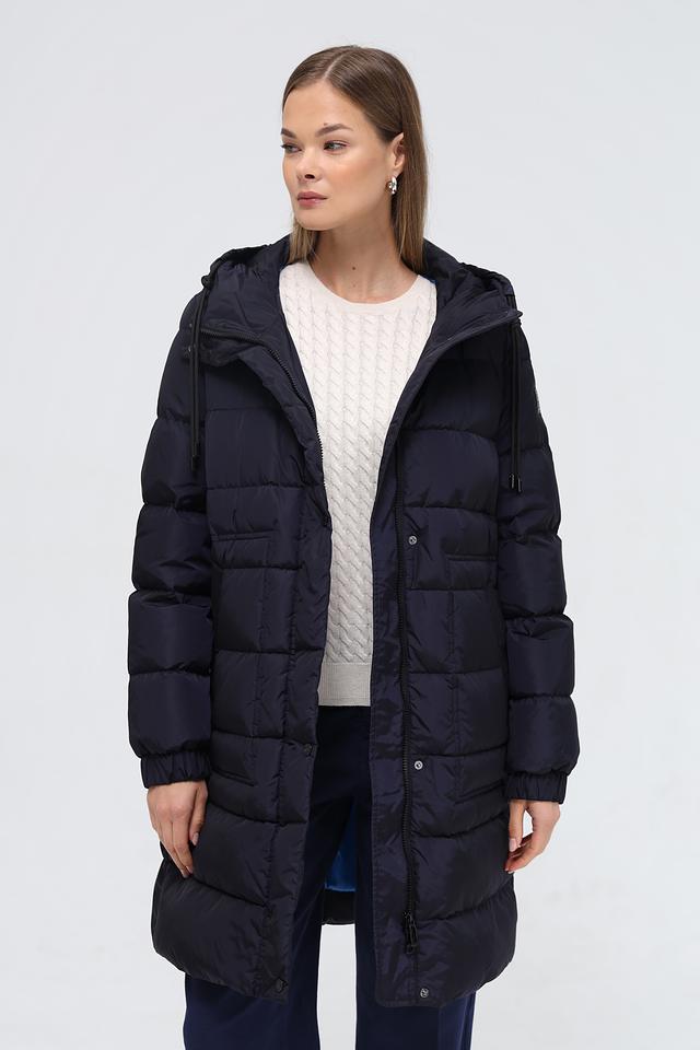 Куртка имеет прямой крой и длину до середины икры, что обеспечивает дополнительное тепло и комфорт. Капюшон со шнурком позволяет регулировать степень защиты от ветра и осадков. Застежка-молния с ветрозащитной планкой надежно защищает от холода.